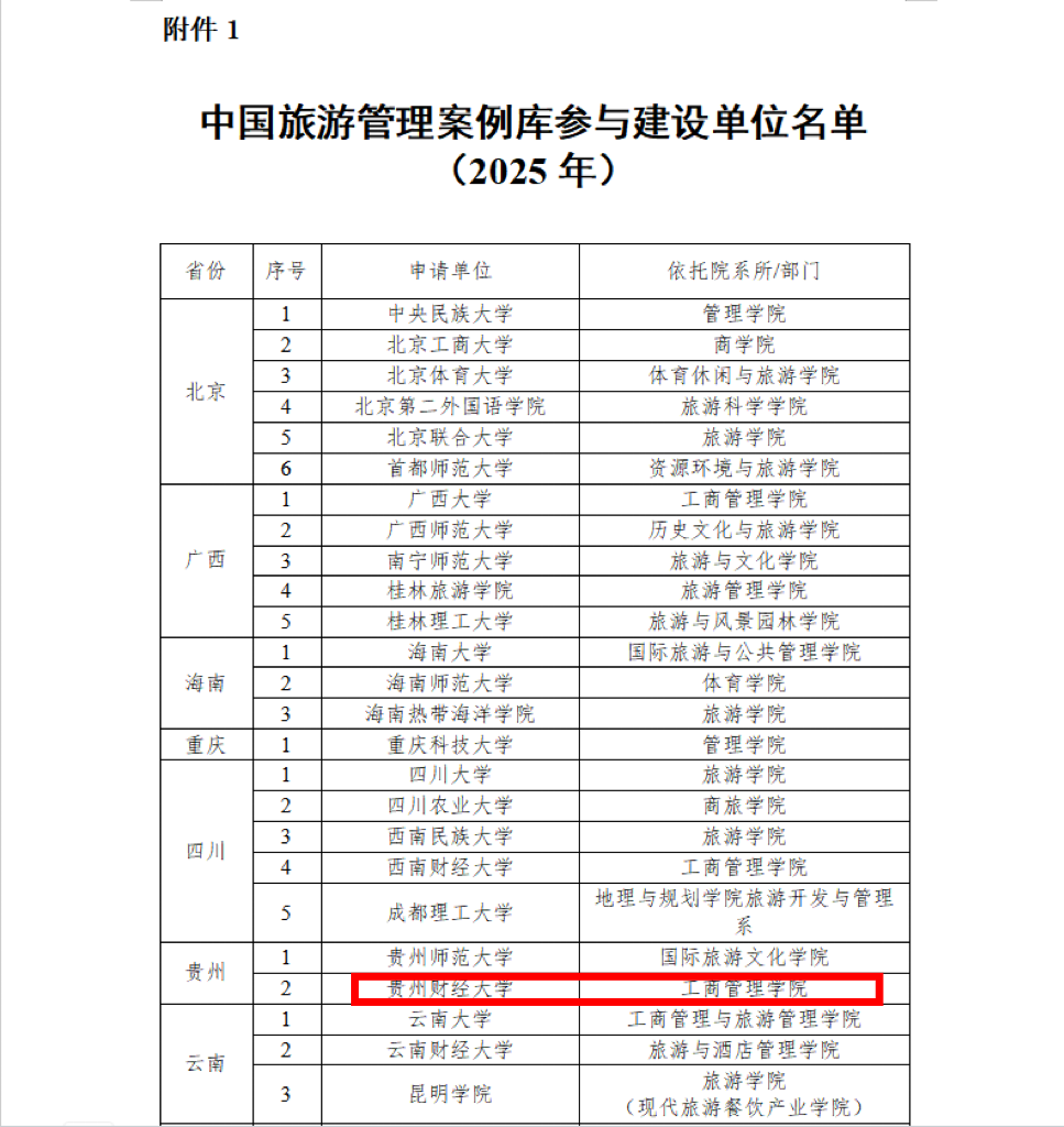 近日,根据文化和旅游部办公厅《关于组织开展中国旅游管理案例库建设工作的通知》(办科教发〔2025〕8号),经公司bv伟德主动申请、贵州省文化和旅游厅审核推荐,公司成功入选文化和旅游部首批“中国旅游管理案例库建设院校”名单。