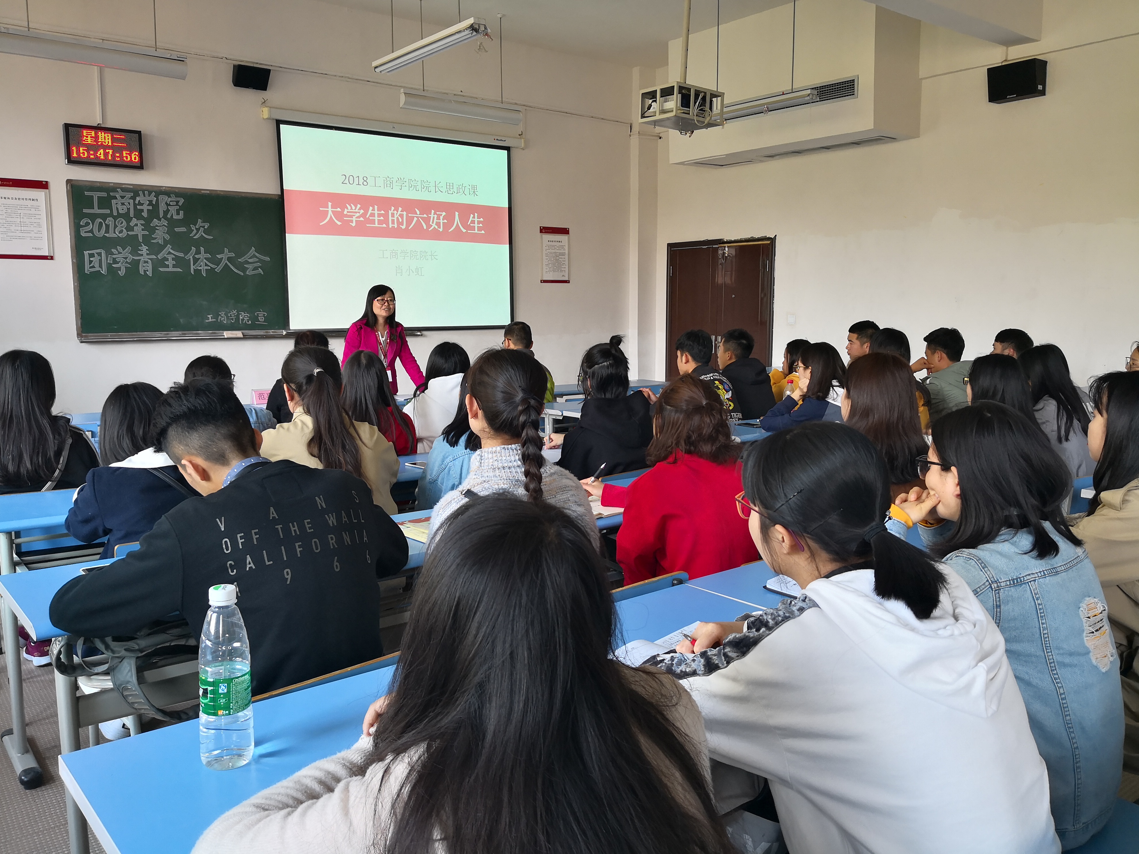 2018年3月20日,工商公司经理肖小虹教授在勤学楼411教室,给工商公司学子们带来了一堂生动的“老员工的六好人生”思政课,工商公司党委副书记范嘉虹、副书记陈劲松、团委书记孔淑华,以及员工代表们一起聆听了本次思政课。
