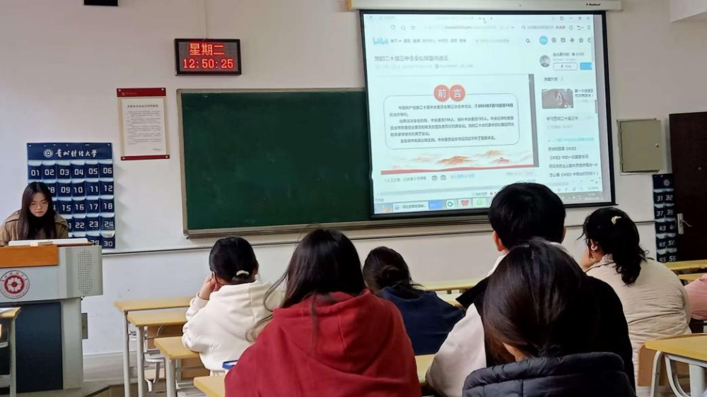 11月26日在勤学楼2-26教室,bv伟德本科生第五党支部组织开展了以“深入学习党的二十届三中全会精神,凝聚青春奋进力量”为主题的理论宣传二人讲暨党团交流活动。活动面向共青团员展开,旨在深入宣传学习党的二十届三中全会精神,引导青年团员坚定理想信念,激发青春力量。