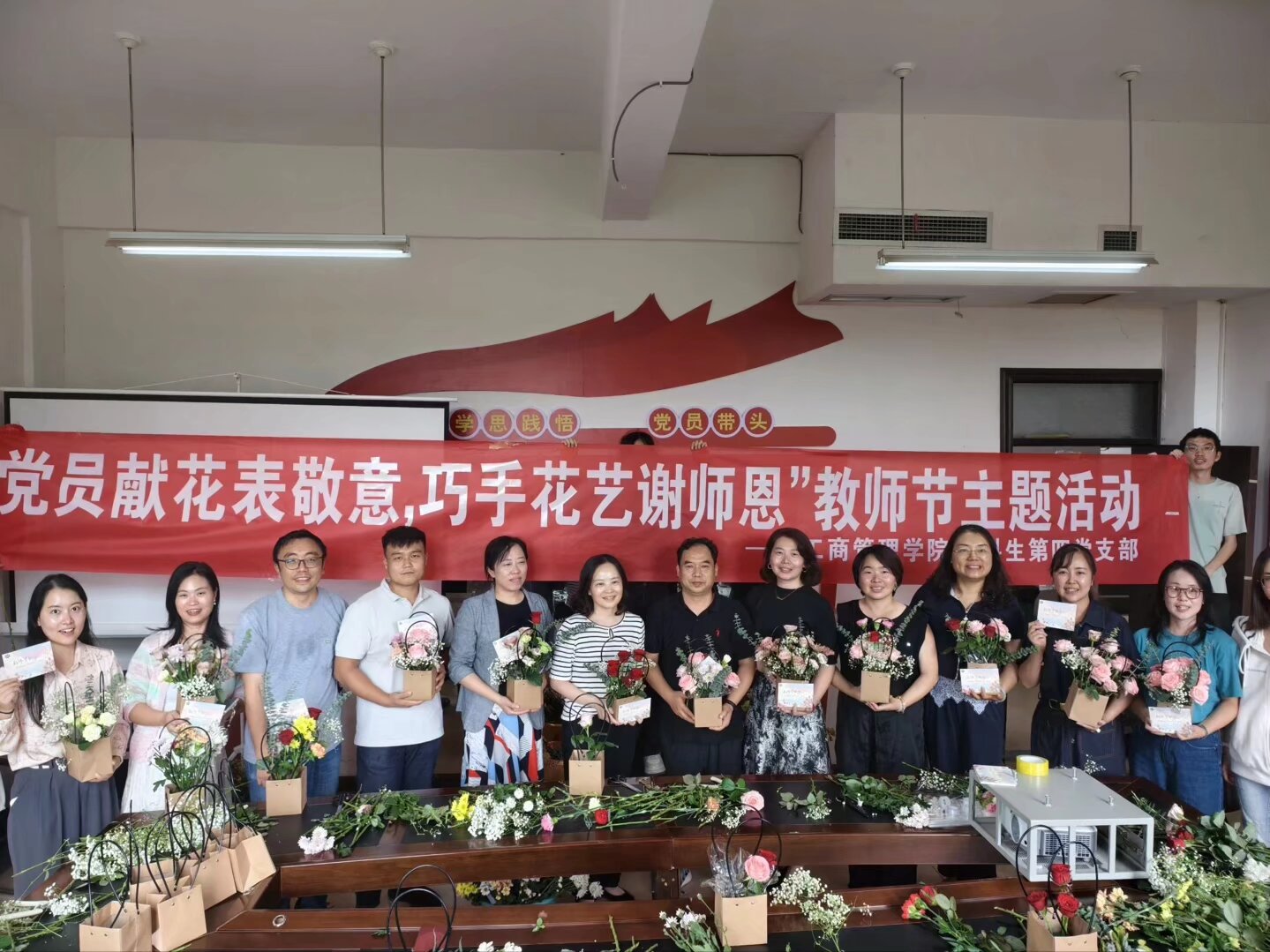 9月10日,在第41个教师节来临之际,bv伟德本科生第四党支部在崇德楼335会议室举办"党员献花表敬意,巧手花艺谢师恩"主题活动。公司党委书记杨阳、副书记何瑞、副经理胡北明出席活动,公司近20名教职工及第四支部全体党员参加。