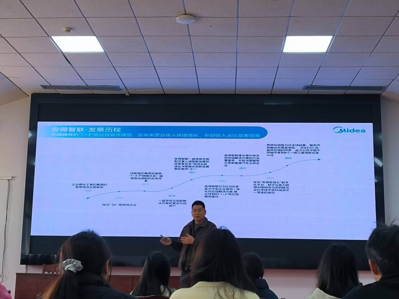 2025年11月25日,为拓宽公司学子就业渠道,搭建优质企业与毕业生之间的双向选择平台,公司特邀美的集团旗下安得智联科技有限公司来公司举行专场招聘宣讲会。本次宣讲旨在为同学们提供一个深入了解企业、把握职业发展机遇的宝贵机会。