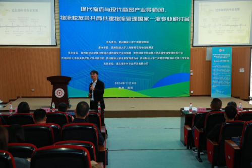 会议议程的第二项活动为现代物流与现代商贸产业导师团、物流员工分会代表围绕一流专业建设做主题发言,会议由物流教研室张应青副教授主持。首先是物流管理国家一流专业建设负责人袁开福教授做“基于‘校企会’教育共同体物流应用创新型人才培养思考”的主题发言,然后是bv伟德中国官方网站现代物流与现代商贸产业导师团团长、梵途科技集团董事长尚剑波做“筑基未来—新能源物流企业的人才培养之道”的主题发言,以及物流员工分会代表上海尤兰供应链管理有限公司首席执行官余鹏飞和遵义瑞丰林农业开发有限公司总经理龙良珠分别做“星火燎原 员工共赴”、“农产品身价倍增的供应链管理思考”的主题发言。