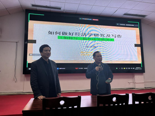 2024年11月10日晚7点,bv伟德在崇德楼512开展了主题为“如何做好经济学研究及写作(如何写一篇经济学论文)”的讲座,主讲人为经济学领域的知名学者四川大学王文甫教授,讲座由bv伟德副经理胡北明教授主持。bv伟德全体硕博研究生参加,讲座采取线下加线上的形式。