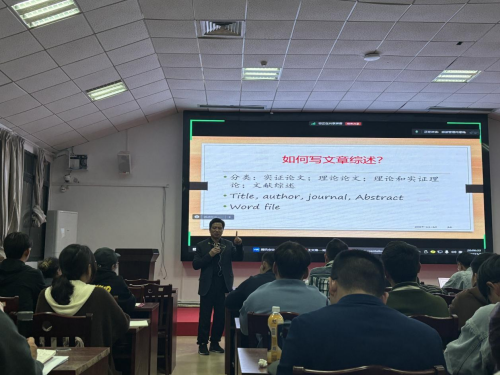 讲座伊始,胡北明教授首先对王文甫教授的到来表示热烈的欢迎,介绍了王文甫教授的主要研究成果,并简要介绍了讲座的主题和目的。胡经理希望通过此次讲座,同学们能够进一步提升写作能力。