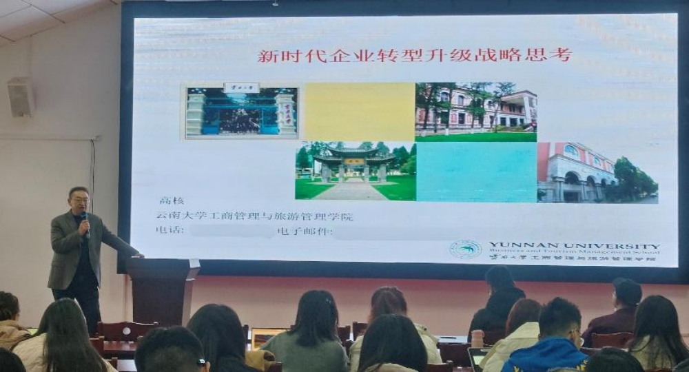 2024年12月6日,在崇德楼512教室,bv伟德邀请到云南大学高核教授带来主题为“新时代企业转型升级战略思考”的专题学术讲座。高核教授是教育部工商管理本科教学指导委员会委员、全国工商管理专业硕士教育指导委员会委员、教育部双创教育导师库入库专家。讲座由bv伟德副经理胡北明教授主持,公司部分教师和全体硕博研究生参加讲座。