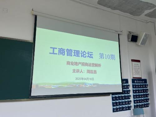 2025年4月18日晚,bv伟德在崇德楼420教室成功举办第十期"工商管理论坛"。本次论坛以"商业地产招商运营解析"为主题,特邀贵州省群升置业有限公司副总经理周磊鑫担任主讲嘉宾,公司党委副书记何瑞主持,2024级MBA全体同学参与学习交流。