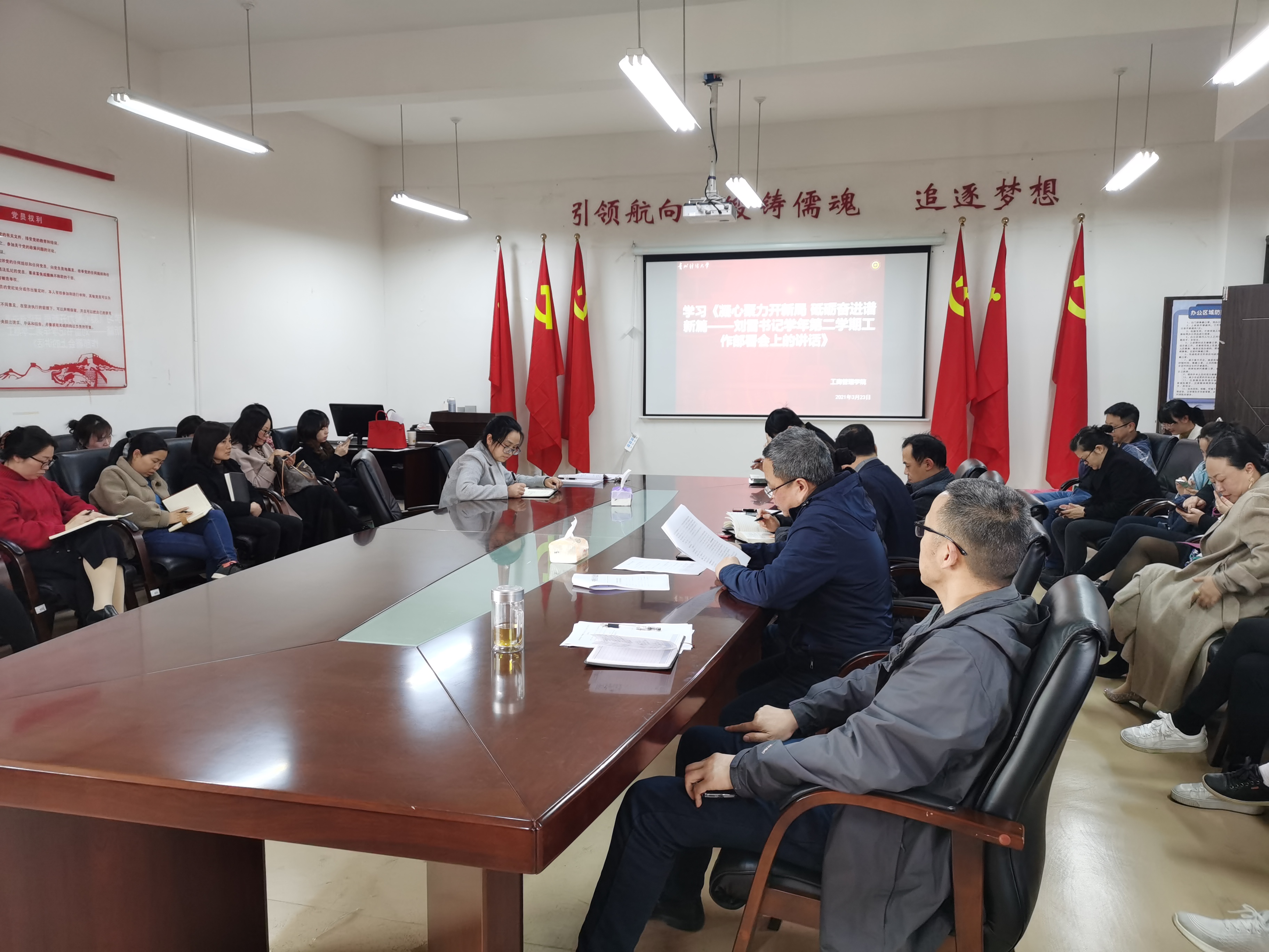 会议重点学习了《凝心聚力开新局 砥砺奋进谱新篇——刘雷书记在2020-2021学年第二学期工作部署会上的讲话》、《第三轮聘期考核工作提供支撑材料的通知》、《关于认真做好基层工会委员会换届选举工作的通知》、《《bv伟德中国官方网站教职工代表大会 工会会员代表大会换届和代表选举工作的安排意见》等文件精神。