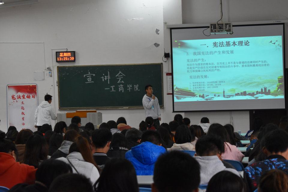 2018年11月15日下午,bv伟德中国官方网站工商公司在进学楼3-1举行了宪法知识主题教育活动。本次活动由工商公司青年志愿者协会承办,莅临活动现场的嘉宾有工商公司党委副书记范嘉虹、陈劲松,工商公司共计260余名同学参与本次活动。