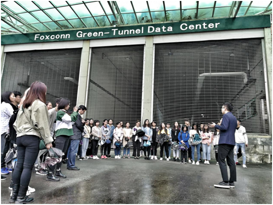 在富士康工作人员的带领下,同学们一路来到Foxconn Green-Tunnel Data Center,首先,工作人员向同学们介绍了富士康科技集团的创始人,历史,贵阳园区主营业务,人才结构及未来发展规划。