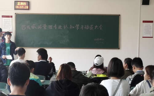 为更好地在实践中了解旅游管理专业、熟悉旅游管理专业、热爱旅游管理专业,提高员工的实际工作能力,为专业认知实习的圆满完成奠定基础,2017年3月23日,旅游系副主任舒小林教授组织同学们开展了专业认知实习动员大会。会上,舒老师首先对专业认知实习的目的、意义等做了介绍,为同学们答疑解惑,让同学们对专业认知实习有了一定的认识。