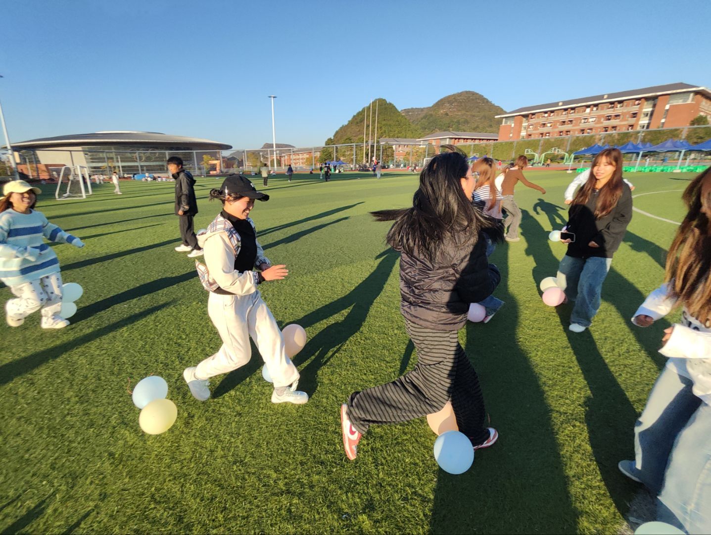 我们分组开展了踩气球、真心话大冒险、大风吹、闹钟炸弹等活动。大家在追逐与躲闪之间尽情释放活力,展现出饱满热情,现场洋溢着欢乐、热烈的氛围,大家在趣味互动中增进了友谊。全程氛围轻松愉悦,有效缓解了日常学习和工作的压力,营造了积极向上的集体氛围。