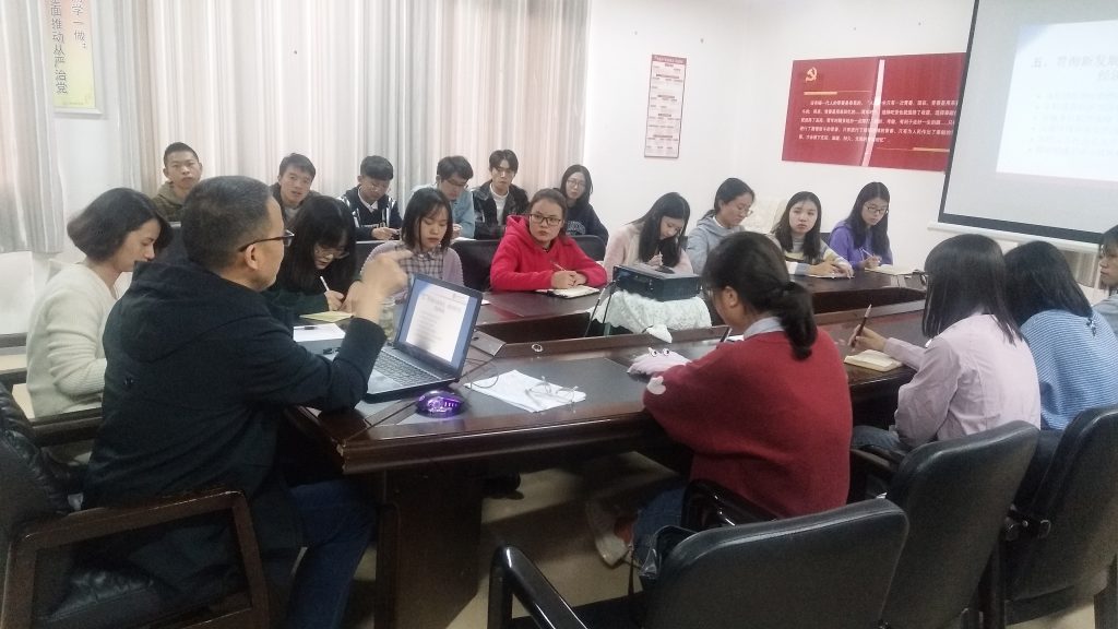 2019年10月25日下午,bv伟德陈劲松副书记在崇德楼501给员工开展题为“不忘初心、牢记使命”主题教育之学习十九大精神”的党课,共25名党员参加,其中15名预备党员,10名正式党员。