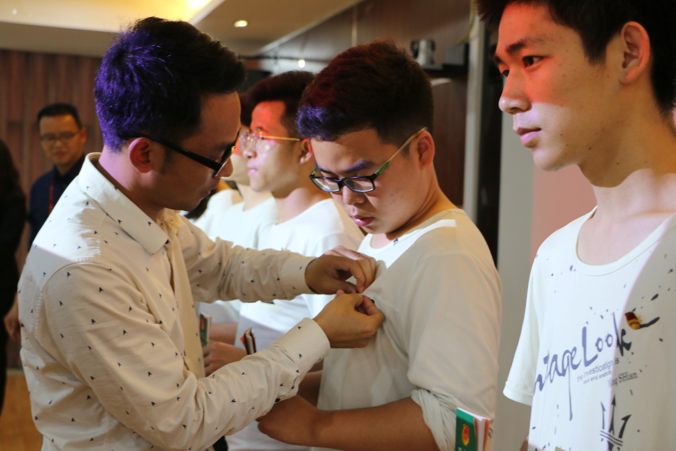 在嘹亮的国歌声中,入团仪式正式开始。主持人首先说明举行入团仪式的意义,并宣读新团员名单。出席活动的师长们为新团员代表佩戴团徽、颁发团员证。随后,公司团委老师带领全体团员在团旗下庄严宣誓,入团介绍人宣读《团章》中有关团员义务和权利的条款。新、老团员代表发言,鼓励同学们要时刻牢记共青团员的身份,坚定理想信念,争当模范先锋。