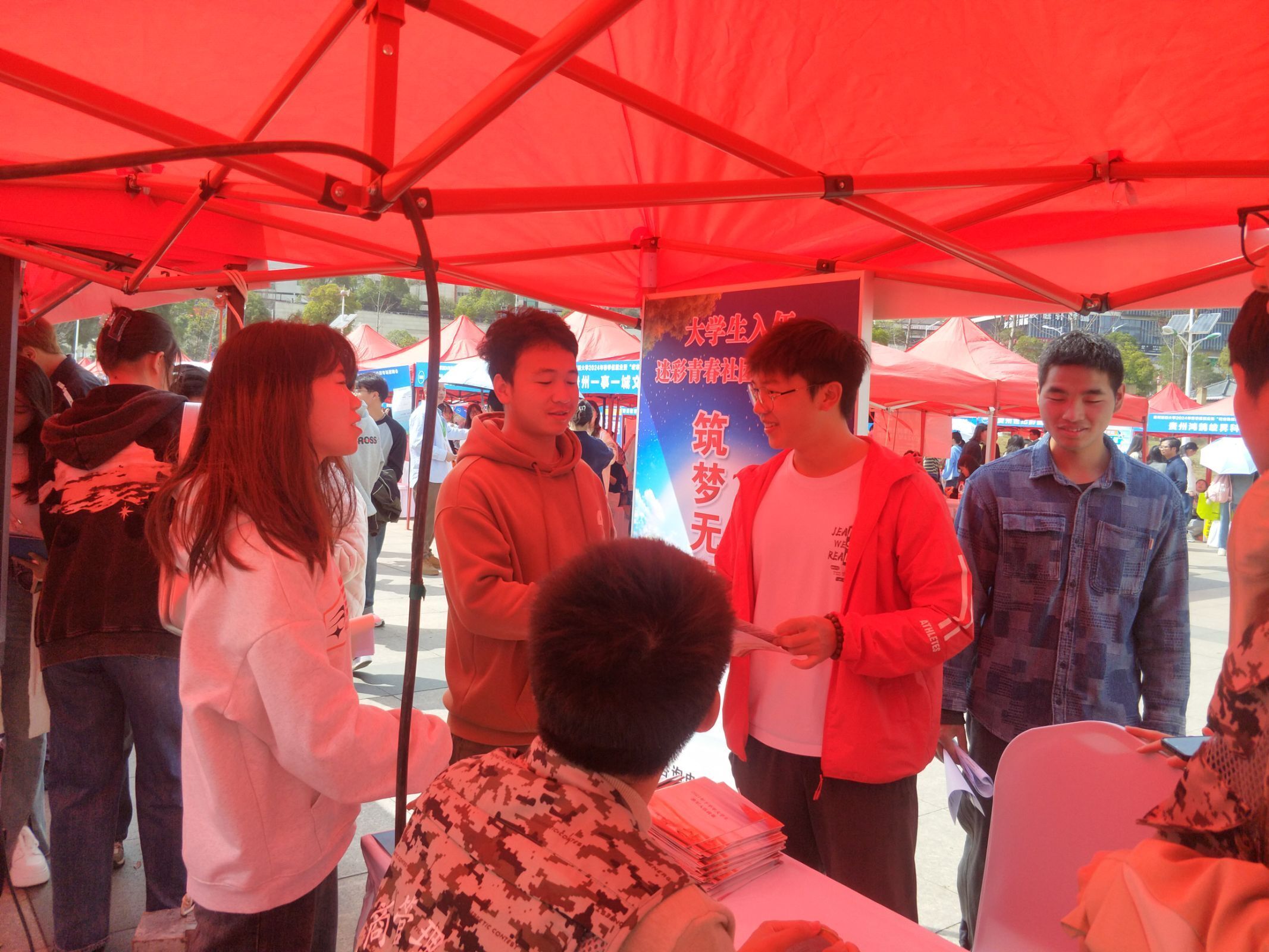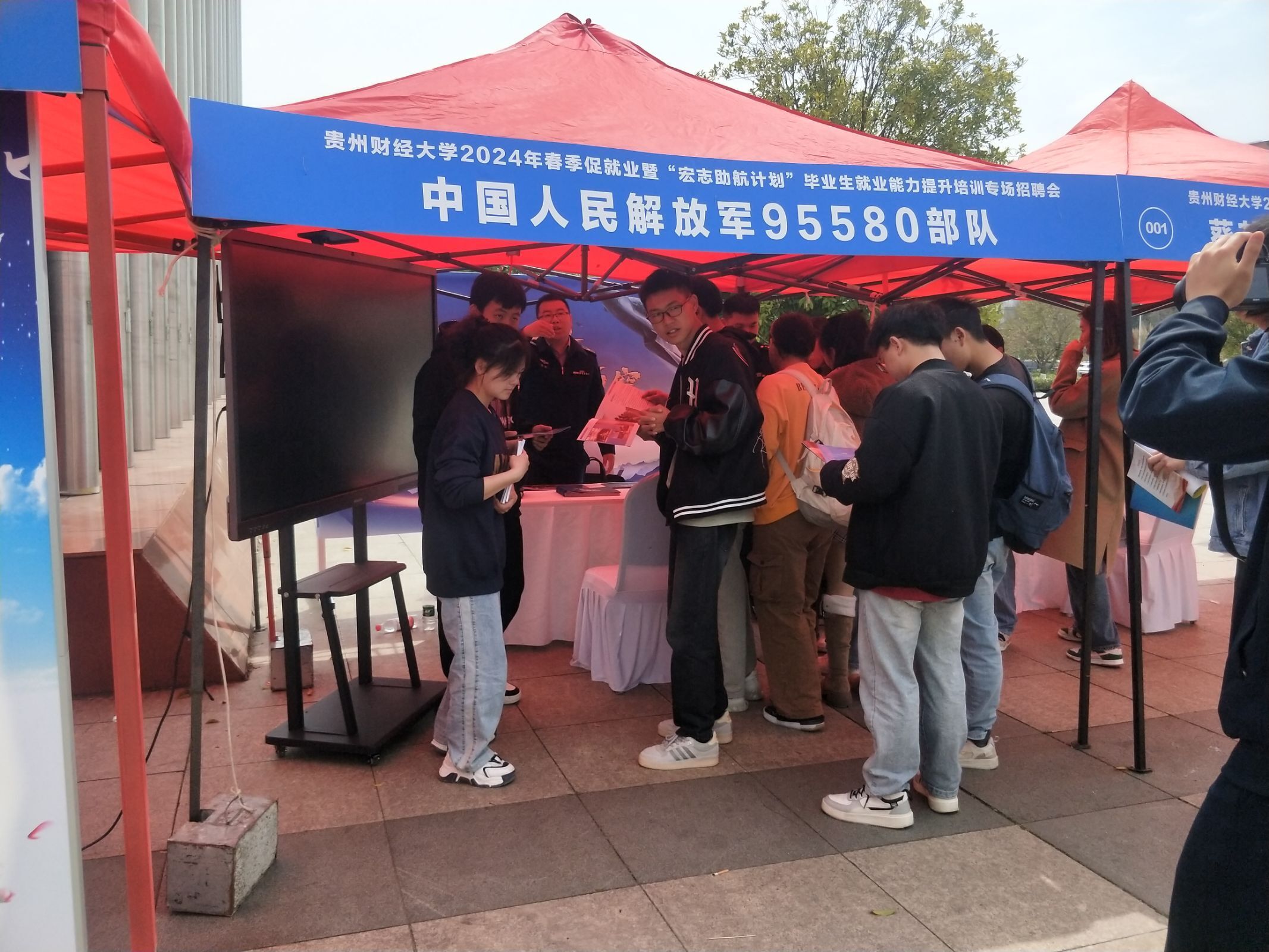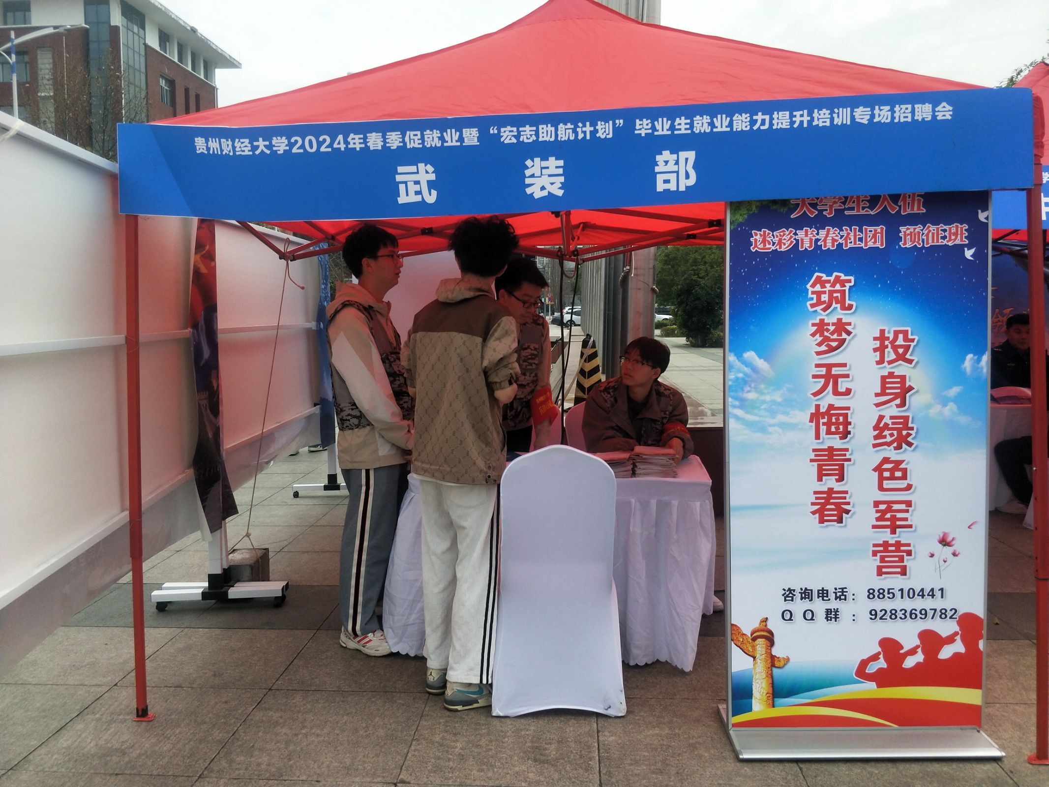 bv伟德“兵锋”校园志愿服务队协助校征兵工作站在毕业生专场招聘会开展征兵宣传活动