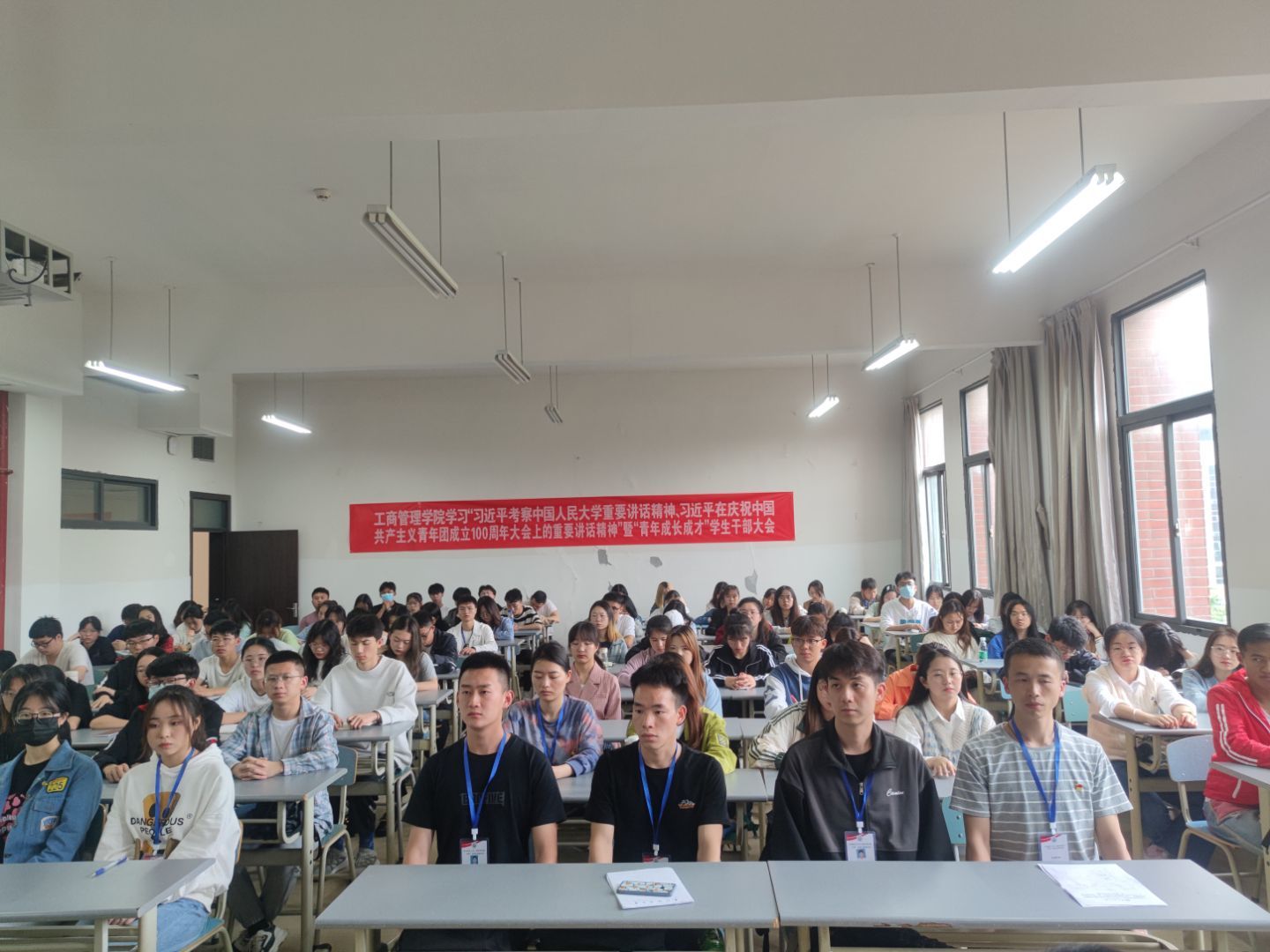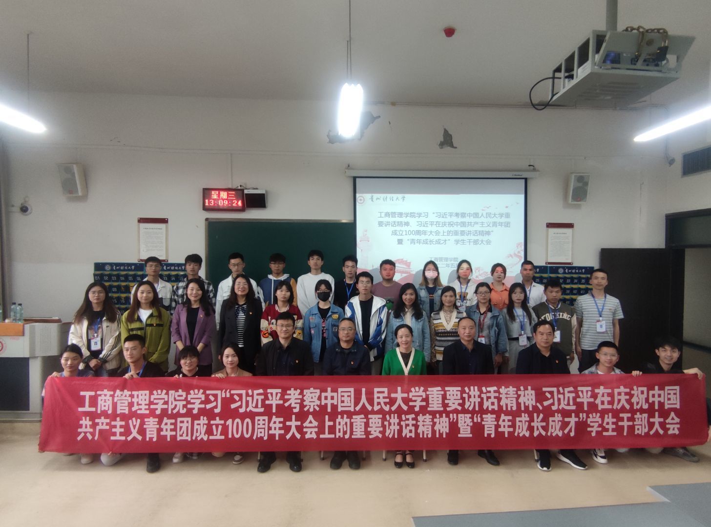 2022年5月11日中午,bv伟德在博学楼320教室召开学习“习近平在中国人民大学考察时重要讲话精神、习近平在庆祝中国共产主义青年团成立100周年大会上的重要讲话精神”暨“青年成长成才”员工干部大会。工商管理公司党委书记杨阳,党委常务副书记、正处级专职组织员崔军,党委副书记何瑞,副经理刘良灿,副经理胡北明,全体辅导员老师、各员工组织指导老师、各班班长、团支书,各员工组织负责人及部长等120余人参加,会议由何瑞主持。