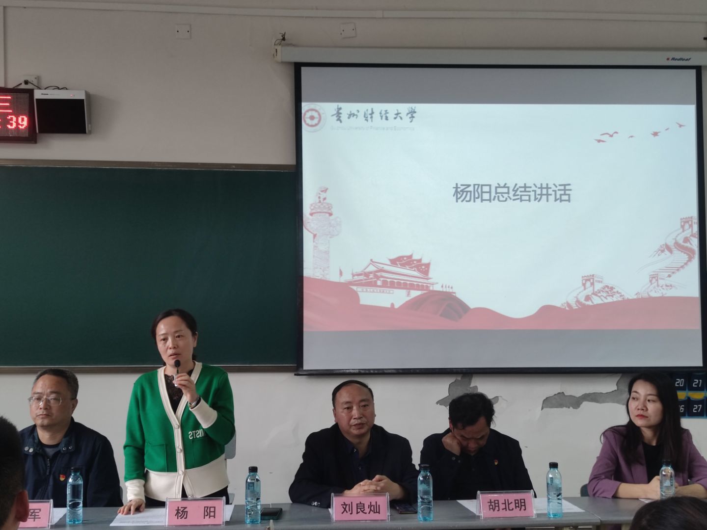 杨阳总结讲话,她对受表扬的12名同学给予了充分肯定,他们用自己的行动彰显了青春榜样的力量,展现了当代青年的风貌,号召其他员工干部向他们学习,向身边的先进和模范学习,在学习生活中发挥青年员工的榜样作用。她对员工干部提出两点期望:一是要敢于在关键时刻显真彰,做一个有锐气的闯将;二是要勇于在平凡的岗位上出光彩,做一名有担当的干将,并以“习近平总书记希望全国广大青年牢记党的教诲,立志民族复兴,不负韶华,不负时代,不负人民,在青春的赛道上奋力奔跑,争取跑出当代青年的最好成绩”共勉在座的员工干部。