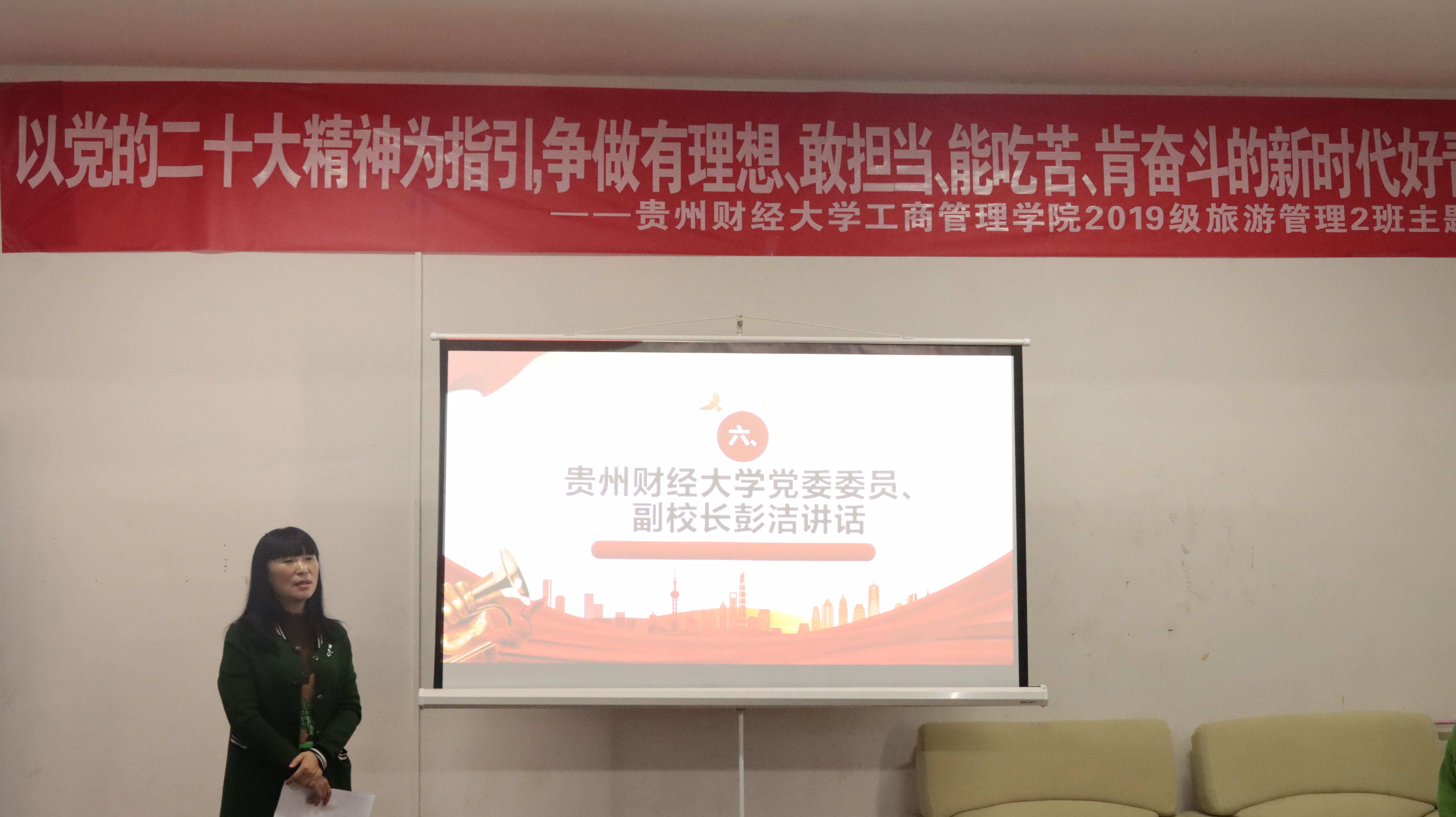11月18日上午,bv伟德在员工社区翠竹2栋四楼活动室开展了“以党的二十大精神为指引,争做有理想、敢担当、能吃苦、肯奋斗的新时代好青年”主题班会。公司党委委员、副董事长彭洁,工商管理公司党委书记杨阳,党委副书记何瑞,2019级旅游管理二班全体同学参加,本次班会由蒋小芳老师、苏浩鹏同学主持。