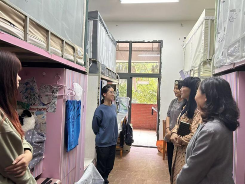 随后,彭洁走访员工寝室,与员工亲切交谈,关心同学们的学习进展、生活状况以及对于公司服务的意见和建议,希望大家能珍惜大学时光,积极进取,努力提升自身素质和能力。她的关怀与鼓励让同学们倍感温暖,增强了大家对未来学习和生活的信心。