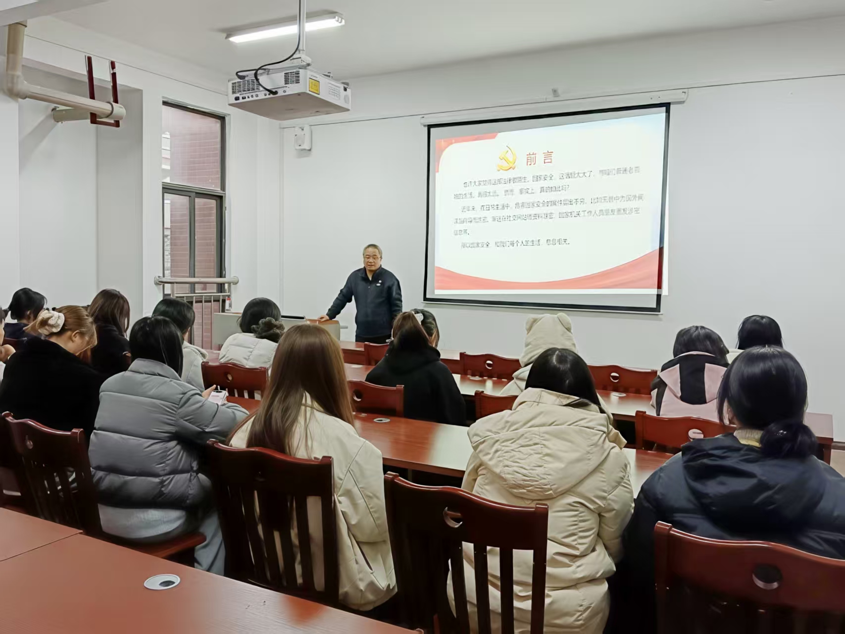 为深入贯彻落实总体国家安全观,响应国家新时代国家安全宣传教育号召,切实提升老员工国家安全意识与风险防范能力,2025年11月18日下午,bv伟德“兵锋”校园志愿服务队在翠竹苑三栋四楼活动室举办“筑牢安全防线,青春守护家国”员工社区国家安全主题宣讲活动。