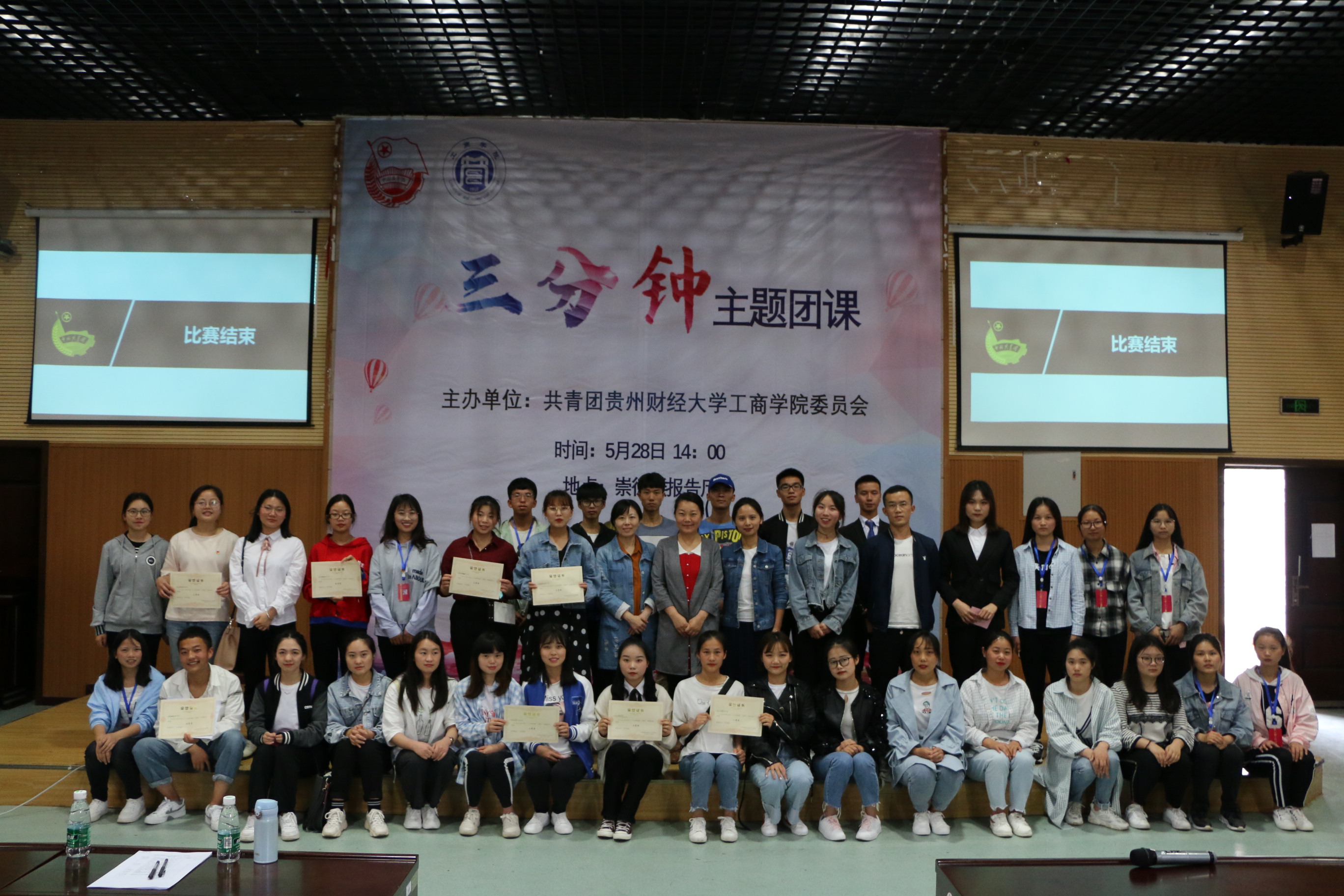本次活动经过初赛,评选出10个团支部进入决赛。同学们通过小品、宣讲、短剧、说唱等多种形式,与同学们分享团的知识,讲述团的故事。经过角逐,17级人力资源管理2班的《团费小课堂》获得一等奖,17级旅游管理班的《习近平总书记给新时代青年的六点期望》等两个团支部获得二等奖,17级工商管理班《入团流程》情景剧等三个团支部获得三等奖,17级物流管理班《我爱我的祖国》朗诵等四个团支部获得优秀奖。