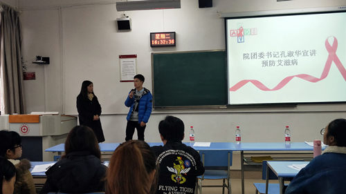 2017年11月21日下午15点30分,工商公司艾滋病防治公益宣讲会在勤学楼2-11成功开展,工商公司党委副书记陈劲松,团委书记孔淑华以及2016级、2017级同学参与了此次宣讲会。