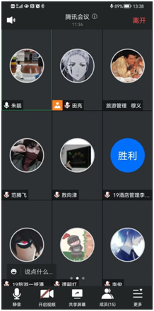 会议主要强调了三方面:一是专业实习是为今后学习和实际工作打下良好基础,希望员工认真对待,严格要求自己,真正得到锻炼,提升自己;二是提醒员工注意实习安全,有事及时与指导老师联系沟通,并定期对实习进度进行汇报。通过专业实习为走向社会、适应社会、融入社会作好充分准备;三是员工依次进入腾讯会议和面试官交谈,由西江三春里民宿的贾总、高总和杜经理对员工进行面试并决定最终面试结果。