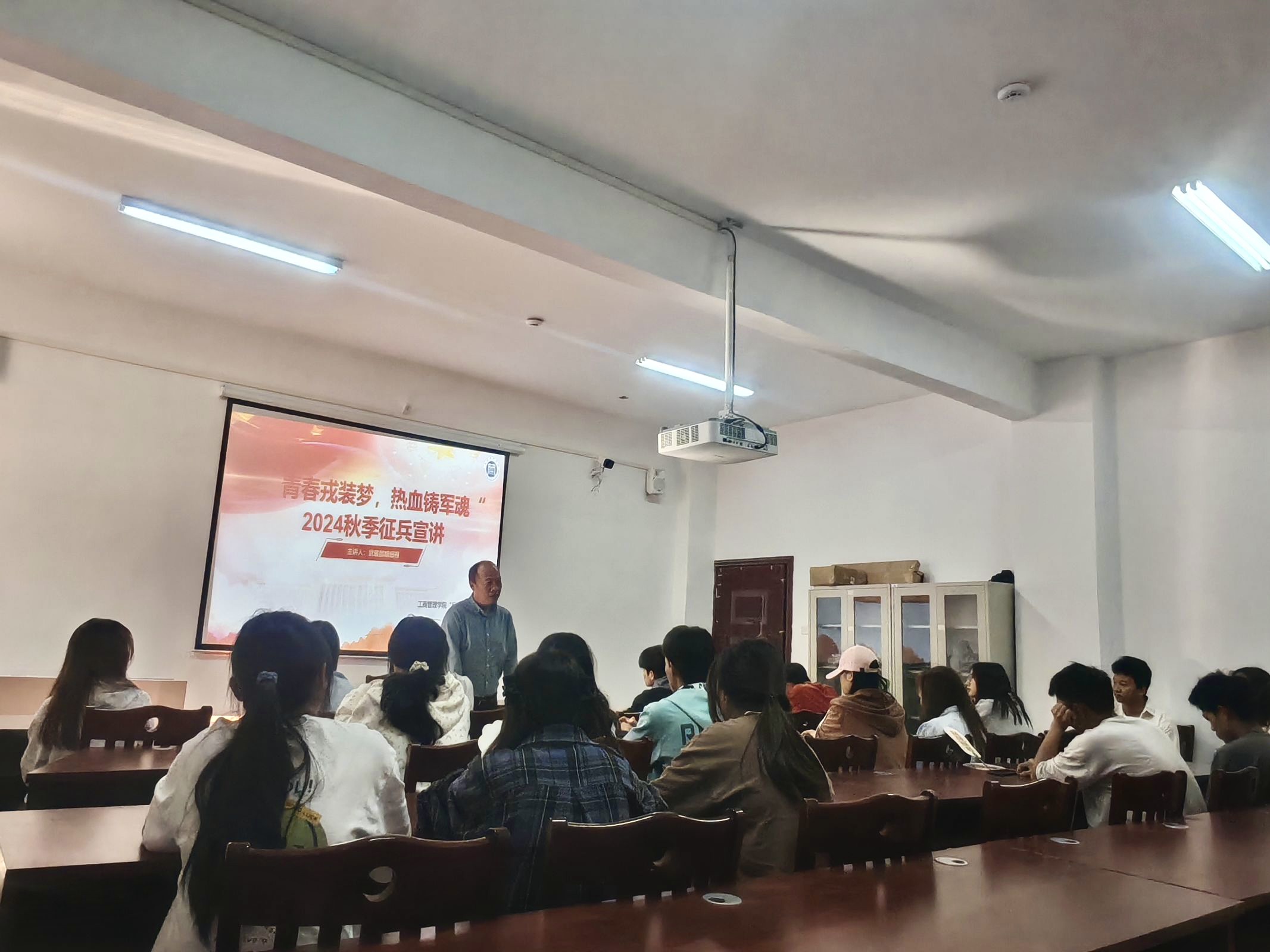 2024年11月15日,bv伟德“兵锋”校园志愿服务队联合公司武装部开展了“青春戎装梦,热血铸军魂”2024年员工社区征兵宣讲会。此次活动在翠竹苑三栋四楼活动室举行,邀请了武装部的胡细根老师和退伍士兵孙建成进行宣讲,员工社区共计45名同学参加。
