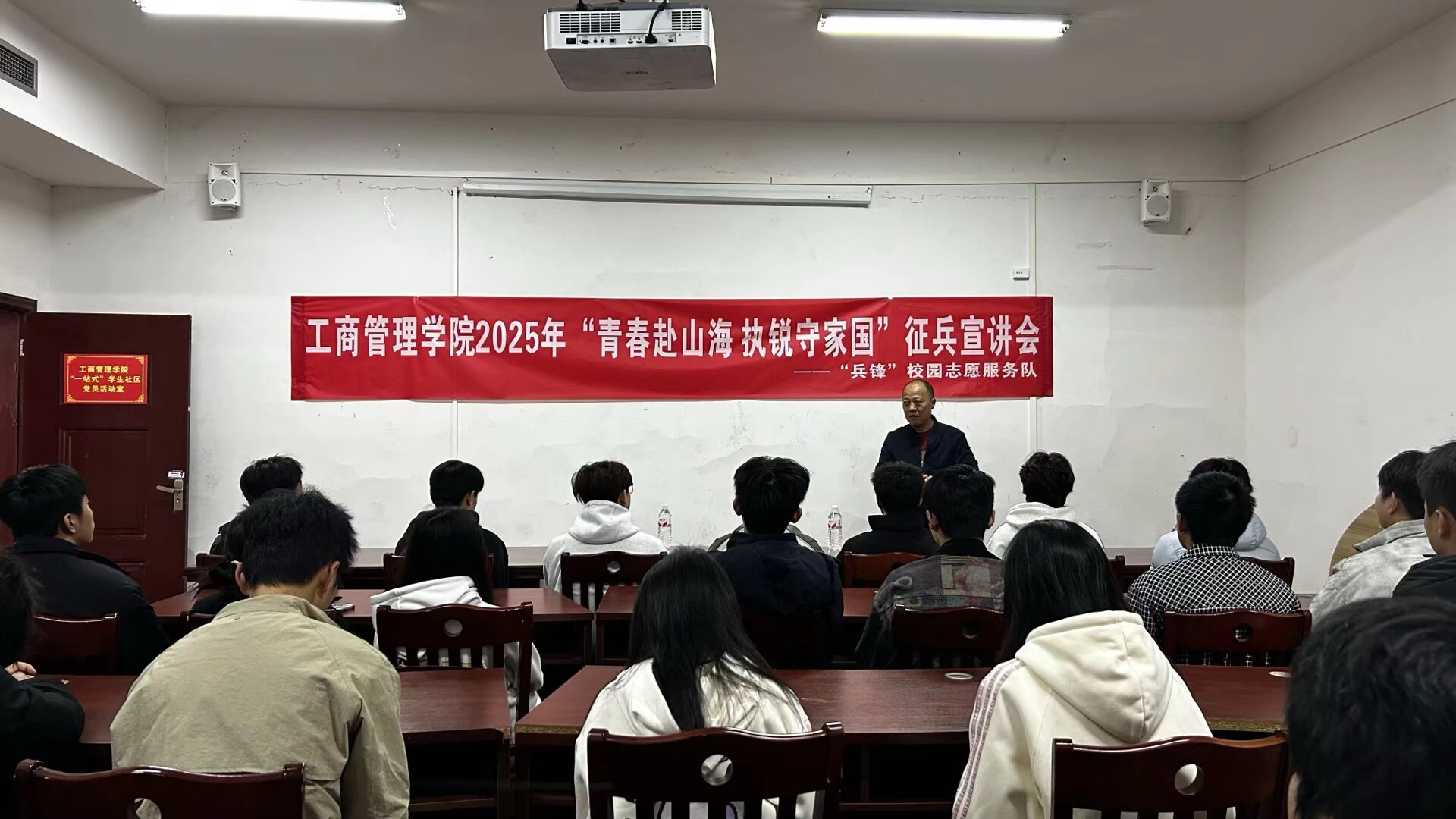 为深入贯彻落实国家征兵政策,鼓励广大青年学子投身军营、报效祖国,2025年11月11日下午2:00,bv伟德联合校武装部在翠竹苑二栋四楼活动室举办“青春赴山海执锐守家国”征兵宣讲活动,本次活动由bv伟德“兵锋”校园志愿服务队承办,翠竹苑社区40余名同学参加了此次活动。